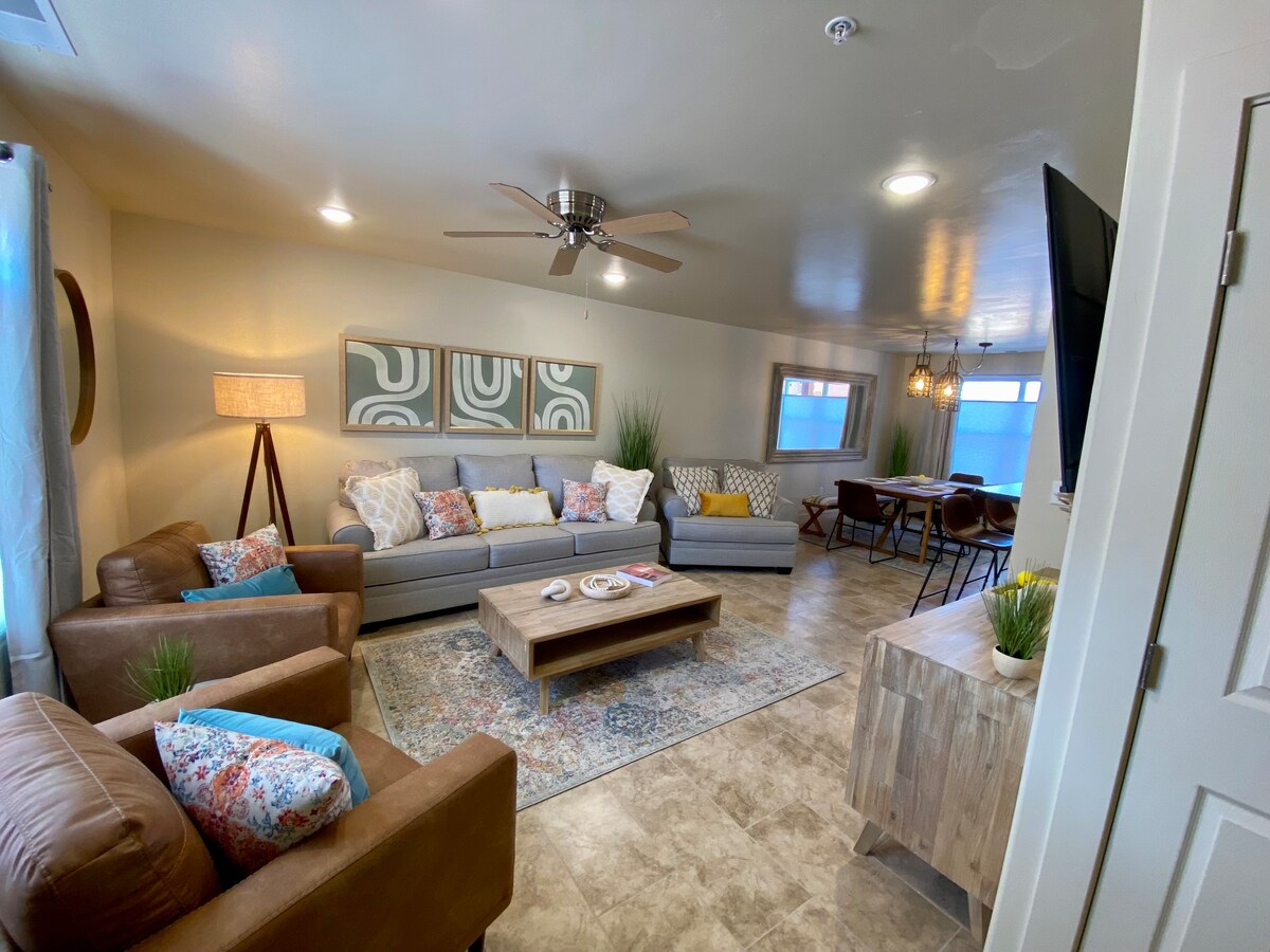 Utah 'vapustaval punasel kaljumaastikul asuv Oasis Townhome on sinu ideaalne segu seiklustest ja lõõgastusest. Naudi hingematvaid vaateid, matkamist, tähtede vaatamist, maastikusõitu, ostlemist, söögikohti ja palju muud. See äsja renoveeritud kolme magamistoaga puhkekoht asub vaid mõne minuti kaugusel Moabi kesklinnast ning seal on privaatne mullivann, jalgpallilaud, kogukonna bassein, täielikult varustatud köök ja Moabi kõige lahedam õhkkond. Lisaks on see lemmikloomasõbralik! 🐕