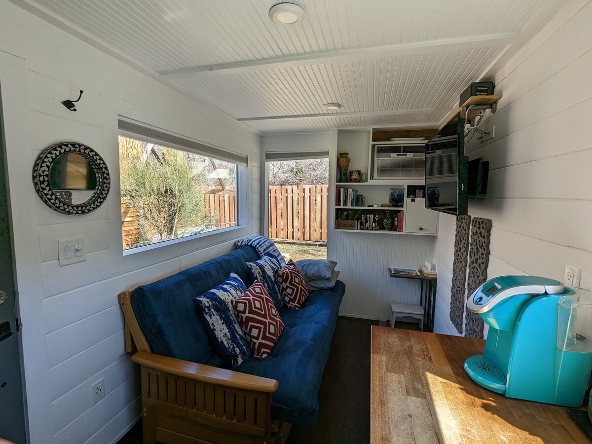 See armas väikemaja on ainult 100sf, kuid sisaldab kõike, mis on vajalik viibimiseks. Ole ümbritsetud ilust vaid 15-minutilise jalutuskäigu kaugusel paljudest teadaolevatest jalgrattateedest, matkaradadest ja kaljuronimisteedest. Hämmastav restoran on lühikese jalutuskäigu (või soovi korral autosõidu kaugusel), kusjuures Zioni pargi sissepääs on vaid 20 minuti kaugusel. Ilusad vaated! Suurepärane koht puhkamiseks ja lõõgastumiseks pärast kõiki seiklusi. Sulle teadmiseks - majutuskohas on mõned karusnahast sõbrad, kellega sa väljas väga tõenäoliselt kokku puutud 🐶 🐈⬛ 🐐