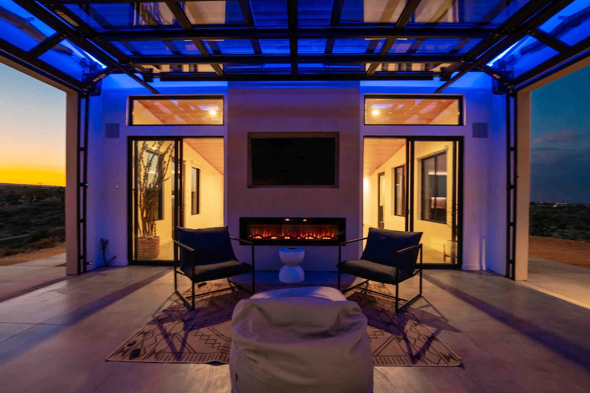 Sukeldu sellesse äsja ehitatud luksuslikku 3 magamistoaga 2 vanniga majutuskohta, kus on avarad aknad, mis tutvustavad hingematvaid maastikke, särav soojendusega bassein ja spaa tärnivalgusega dippide jaoks ning spetsiaalne spordiruum. Lõõgastu lõputu taeva all kahel laialivalgel aakril oma privaatses oaasis, mis sobib ideaalselt tähtede vaatamiseks ja terrassil toimuvateks kogunemisteks. Ärka üles hingematvate päikesetõusude keskel, avasta Joshua Tree imelisi imesid ja seejärel naase oma kõrbeparadiisis noorendavale leotamisele.