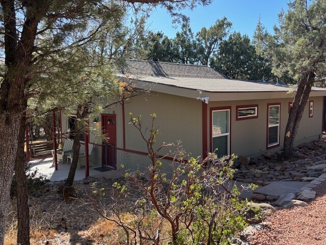 Modern, beautifully architected and spacious 2 bed/2 bath single-level cabin in a gated, upscale community. Sits on side of mountain with incredible views all around. Home is in a secluded cul-de-sac, with paved rolling hills for walking/biking or sight seeing. Hike to the top of Ruin Hill where you can see Native American Ruins or sit in the back patio and enjoy the Elk visitors. Only 1hr 45min from Phoenix area, Level 2 (50A) EV Charger onsite. Typically 20 deg cooler than Phoenix area.