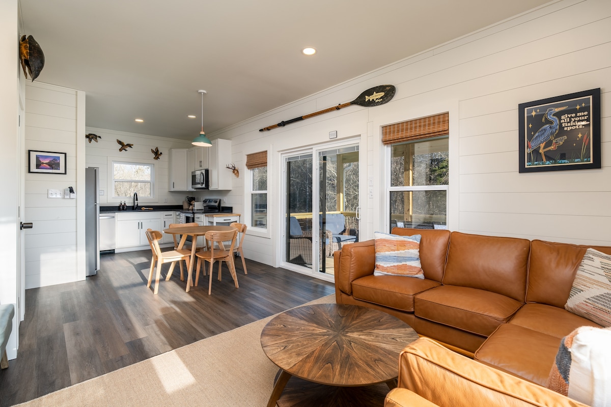 New Riverfront Home with Mtn Views