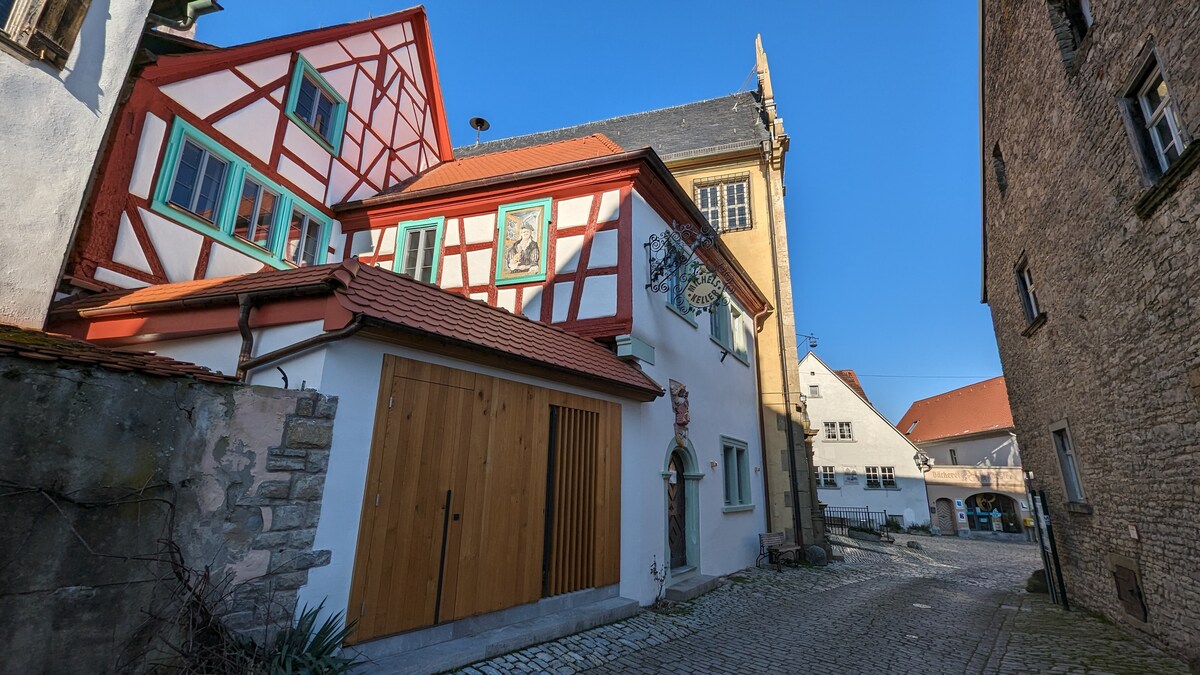 Direkt neben dem Marktplatz und dem Rathaus liegt in Sulzfeld der Michelskeller, eine Gaststätte aus dem 17. Jahrhundert, die in den letzten Jahren liebevoll renoviert wurde. Das hier angebotene Gästezimmer, mit kleiner Küchenzeile und eigenem Bad mit Dusche, gehört zum ersten Stock des Gebäudes, welches neben dem Zimmer noch eine Wohnung und eine Ferienwohnung umfasst. Die Gaststätte ist aktuell nicht bewirtschaftet.