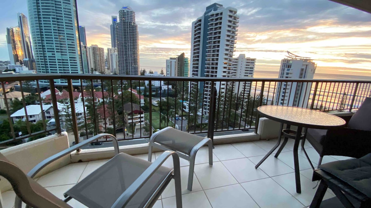 Rannaäärne korter kõrgel korrusel, kus on seinast laeni aknad, privaatne rõdu ookeanivaatega ja juurdepääs Surfers Paradise'i rannale otse üle tee. Korteris on magamistoas eriti lai kaheinimesevoodi ja puhkeruumis kaheinimesevoodi. Täielikult varustatud köök, kiire wifi, kliimaseade, telerid Netflixi ja YouTube 'iga, tasuta parkimine ja täielik privaatne pesumaja. Külalistel on juurdepääs jõusaalile, spaale, saunale, basseinile ning basseini lähedal ja katuseterrassil asuvatele grillidele.