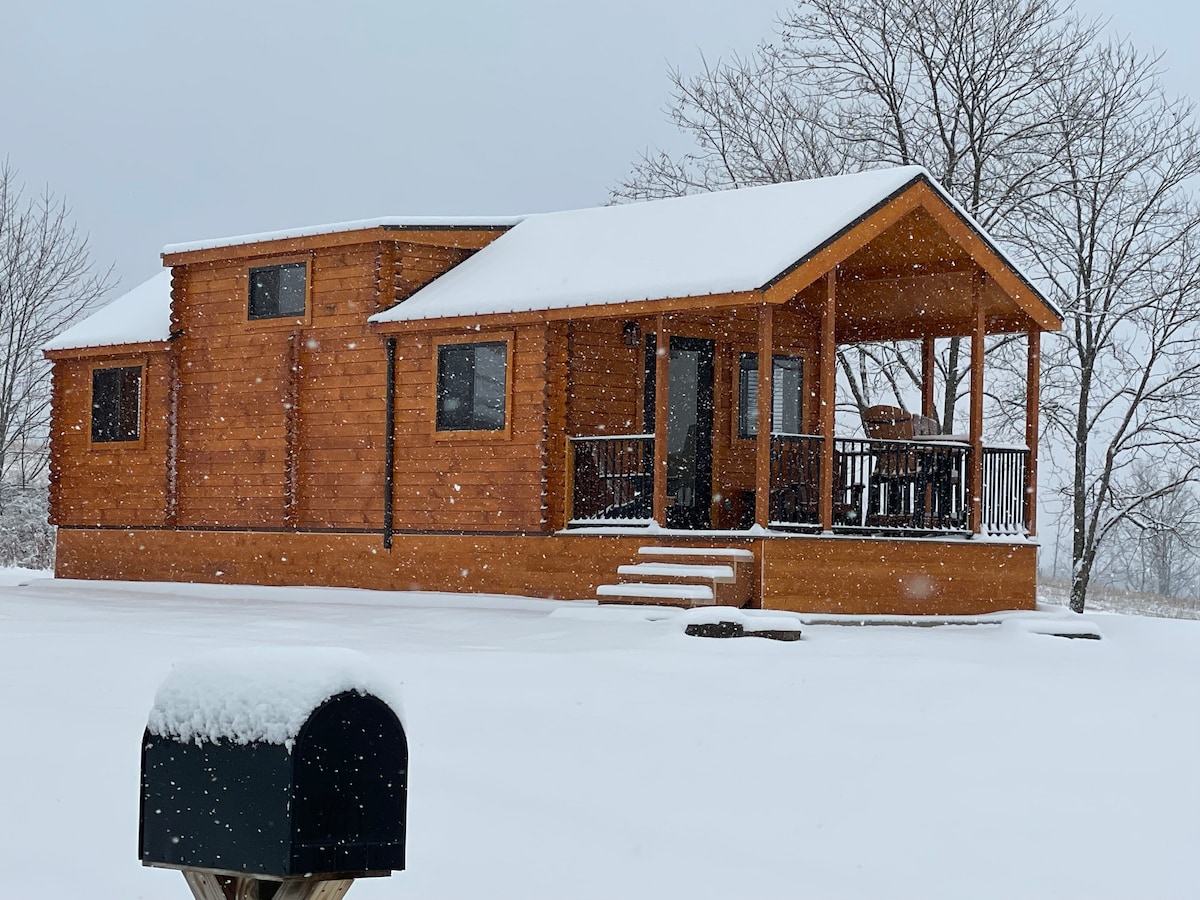 Romantic winter hideaway for couples! Cozy 1BR King cabin in Thompson, PA—just 15 min to Elk Mountain. Enjoy skiing or snow tubing by day, then unwind in the hot tub or by the firepit under a starlit sky. Perfect mix of charm, comfort, and seclusion for your winter retreat. ⭐ “Peaceful, private, and perfect! Loved the hot tub after skiing.” – Jessica 🌄 HIGHLIGHTS ✓ 15 min to Elk Mountain ✓ King bed & cozy living space ✓ Private hot tub & firepit ✓ Romantic winter retreat
