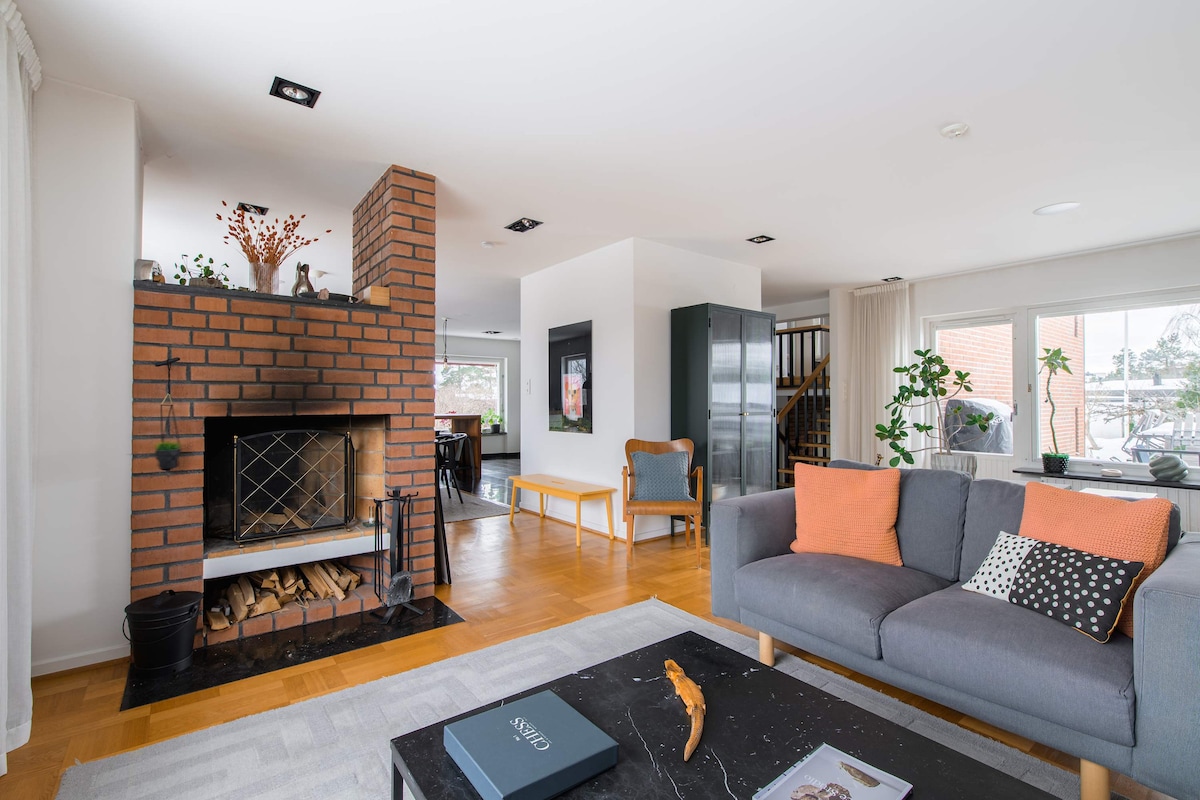 Idülliline maja, suur aed, otse rahuliku järve ääres. 18-minutilise autosõidu kaugusel Stockholmi kesklinnast. Hinna sees on paat + kalapüügivahendid + puhkeala järve pontoonil. kõnekeel: eng, ger ja fr Peamagamistuba, kaasaegne köök, kaks vannituba, söögituba, elutuba. Pesumasin, kuivati, nõudepesumasin, põrandaküte, terrass, grill. Kiire wifi, Verisure'i turvasüsteem. Eelistatavalt vaiksed üritused. Minimaalne kestus: 2 ööd. Vi hyr inte ut för en dag, då extra avgift på 15 000:-.