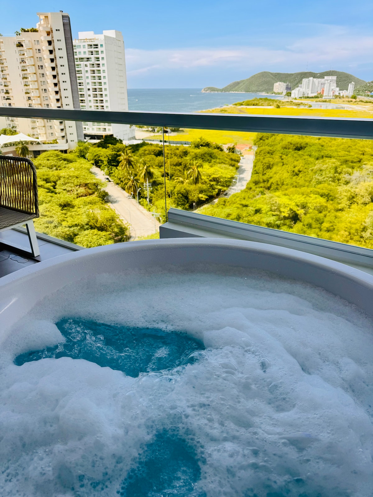 Lõõgastu luksuslikus korteris asuvas ainulaadses ja vaikses puhkepaigas, kust avaneb vaade ookeanile ja kus on privaatne mullivann, naudi 70-tollist telerit ja varustatud kööki. Asub eksklusiivses korterhotellis Santa Marta turismipiirkonnas, vaid 3-minutilise jalutuskäigu kaugusel Bello Horizonte kõige ilusamast rannast, ideaalne paaridele või 3 või 4 inimesele: lai kaheinimesevoodi + Queen-pesa. Tasuta igapäevane koristamine. Naudi viietärnihotelli ja koge midagi muud. Broneeri kohe!