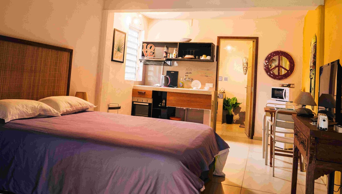 Lõõgastu selles hubases stuudios, kust avaneb vaade Mooreale Renoveeritud rannaäärses stiilis stuudio, ideaalne asukoht 5 minuti kaugusel lennujaamast ja kõrgel, kust avaneb vaade sõsaraarele. 🏝 Miks valida meie stuudio? Rahu ja mugavus – soe kookon. Lähedal: jahisadam, poed ja loc.voit (5 min), kesklinn (10 min) ja rannad vähem kui 15 minutiga. Lõõgastav välisilme – terrass vaatega Mooreale. Täielikult varustatud – köök, elutuba, mezzanine, vannituba, wifi, parkimine, voodipesu olemas.