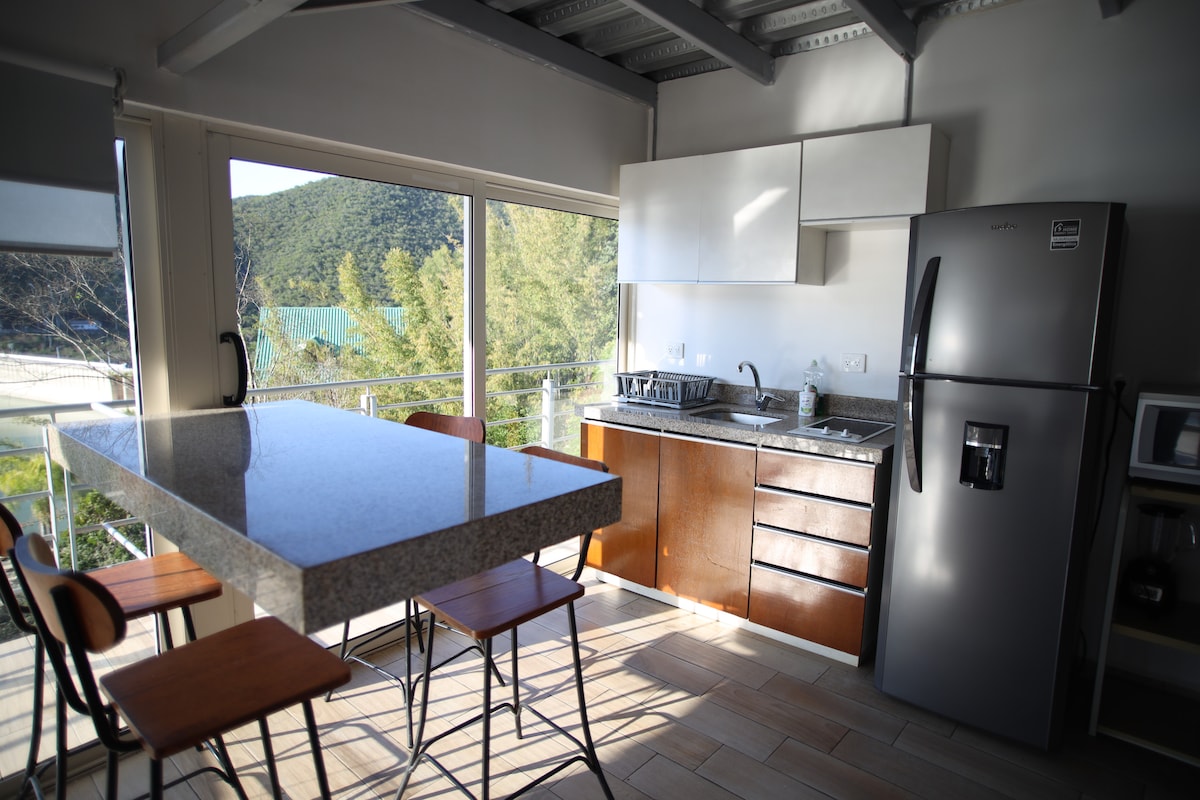 Maja, kust pääseb otse Hualahuise jõele astmete ja käsipuudega. koge selles maalähedases majutuskohas väga mugavat kogemust. Lõõgastu koos pere ja sõpradega selles majas, kus saad rahulikult hingata. Majas on kliimaseade ja soe õhk külma ilmaga, soe vesi, wifi, turvakaamerad, parkimine ruumides, grill röstitud liha jaoks ja varustatud köök. El Sabino ürituste, sinu lemmikrestoranide ja rippsilla lähedal.
