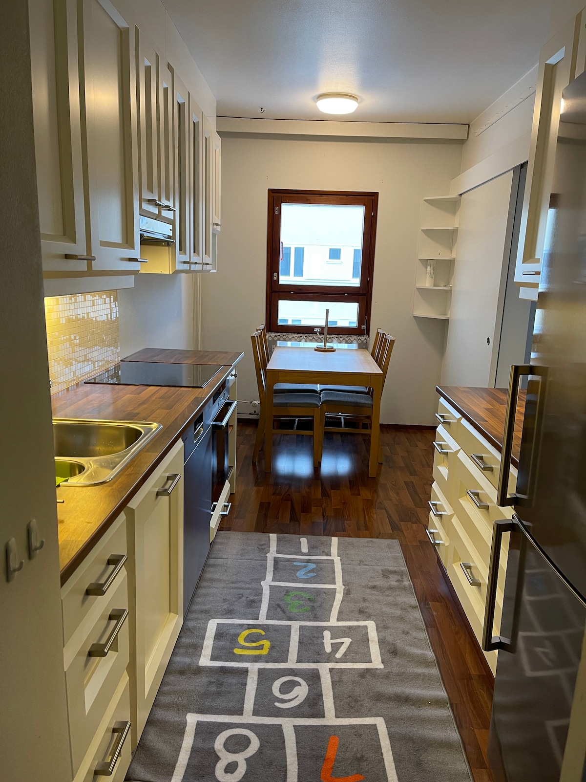 Armas renoveeritud paarismaja. Kaheinimesevoodiga magamistoad 180 cm ja 140 cm laiad. Diivanvoodi elutoas. Töölaud kaugtöötajatele. Tasuta parkimiskoht korteri ees (elektriauto laadimine lisatasu eest). Vaiksed mänguväljakud lastele kohe korteri kõrval. Suurepärased bussiühendused (nt Matinkylä metrooga) ja jalutuskäigu kaugus lähimatest poodidest. Teiselt poolt tänavat väljuvad valgustatud fitnessirajad. Rahulik, tarastatud privaatne tagaaed, kus paistab õhtune päike. Suurepärane sihtkoht lastega peredele!