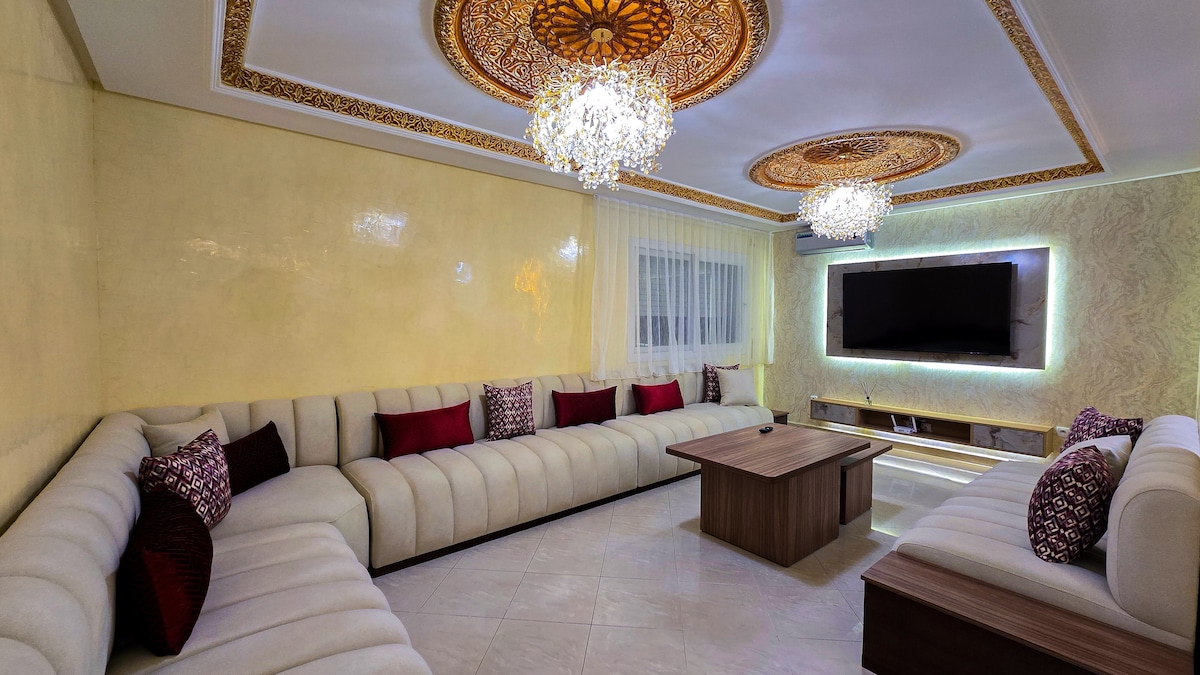 Ashraf Home offers you an exceptional stay in a modern and refined apart in a private and secure residence. The apartment, recently tastefully furnished, guarantees you premium services for optimal comfort. Close to all the amenities of the superb locality of Tangier.(Beaches, Shops, Cafes... etc) Location 8-minutes from Airport and 11-mnt to the town, 5-mnt Achakar beach🌊. two spacious living rooms 🛋️☕️ equipped kitchen🍽️ and two elegant bedrooms🛏️🛌. Book now for unforgettable moments! 🎉