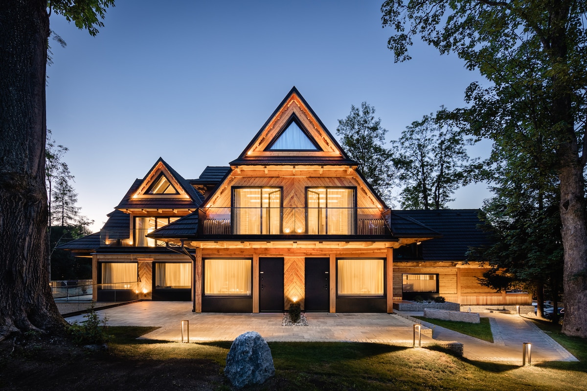 Grand Chalet on luksuslik villa pindalaga 250 m2 Podhale 'i südames, kust avaneb panoraamvaade Tatrale' ile. Külalised saavad nautida: 4 konditsioneeriga magamistuba, 4 vannituba, vaatega mullivann, saun, piljardi ja PS5-ga mängutuba, spordiala, fiiberoptiline töökoht, laste nurk, kamin ja aastaringne grill. Villa pakub mugavat majutust 10 inimesele. Ideaalne perepuhkuseks, kohtumisteks sõpradega või tööks - mugavus, modernsus ja ainulaadne atmosfäär ühes.
