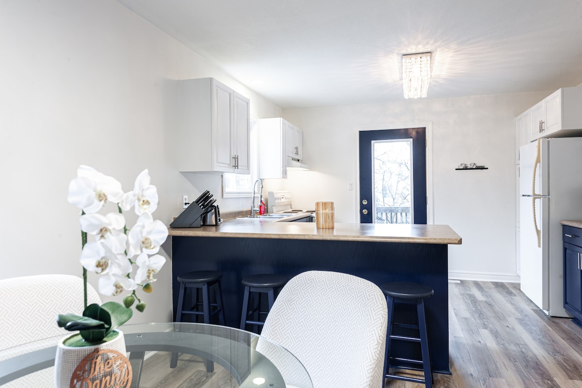 Hubane peatumine sajandi maja allkorruse korteris. See ruum on täis iseloomu ning seda on hiljuti uuendatud paljude stiilsete ja kaasaegsete omadustega. Naudi mugavust ja mugavust, olenemata sellest, kas reisid töö või lõbu pärast. Kitcheneri kesklinna äärelinnas on 5-minutilise jalutuskäigu kaugusel GO raudteejaamast, baaridest ja restoranidest, Goo/gle 'i kontoritest ja LRT-st. Naabruskond on küps ja vaikne, koduks paljudele imelistele peredele, kes on siin aastakümneid elanud.