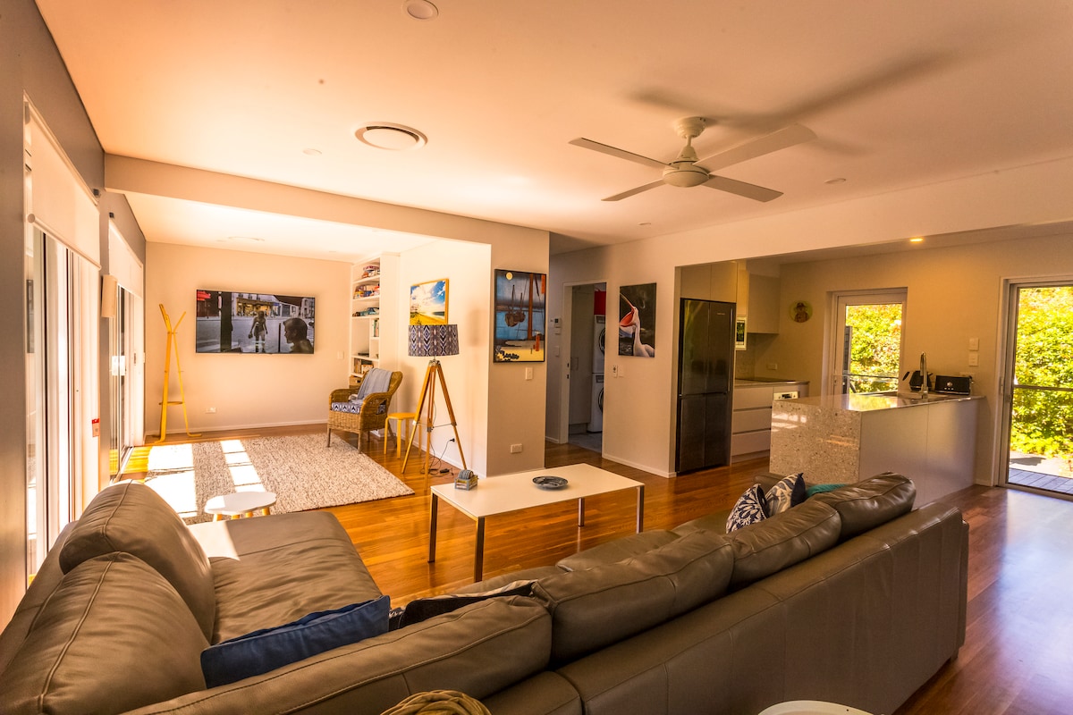 See peremaja on 5-minutilise autosõidu kaugusel (15-minutilise jalutuskäigu kaugusel) randadest ja poodidest. Maga voodis, vaata puid, kuula linde ja kuula öösiti koalasid. See lemmikloomasõbralik majutuskoht asub jõe lähedal ja kulgeb jalutusrajaga armsa metsa ääres. Seal on maapinnal asuv bassein ja terrass, kust avaneb vaade metsale. Parkimine tänavaväliselt. Nädalavahetused - saabumine R 14.00 ja võimaluse korral kell 16.00. Iganädalased broneeringud eelistatud suvepuhkustel.
