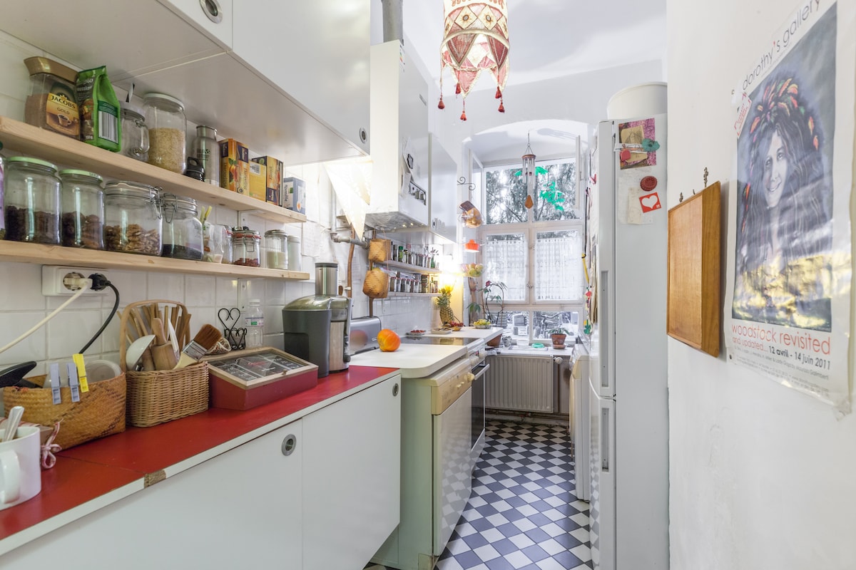 Kena korter tüüpilises berliinlas vanas majas, trendika Neuköllni südames, 100 m kaugusel ainulaadsest Tempelhof Flughafenfeldist ja 5-minutilise jalutuskäigu kaugusel Hermannstr S-U Bahni jaamast! Naudi suvel rõdul (või Flughafen Feldis) loojunud päikest või talvel tuletorni ees olevaid romantilisi õhkkondi!