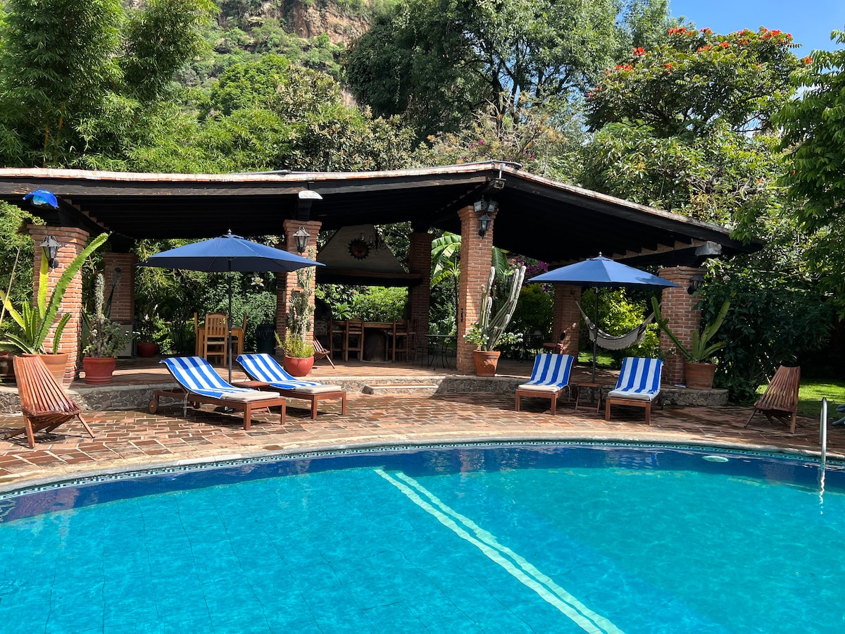 Bienvenid@s tod@s. Es una casa de estilo colonial con un gran jardín de árboles frutales, alberca y Temazcal. La alberca cuenta con calefacción solar y caldera a gas (precio extra). Malinalco es un pueblo mágico precioso, con un mercado tradicional. La zona arqueológica incluye una pirámide tallada en la montaña. Sólo hay dos pirámides monolíticas en el mundo y esta es una de ellas. Toda la zona es un vergel anclado en un microclima delicioso. Un lugar tranquilo y lleno de historia.
