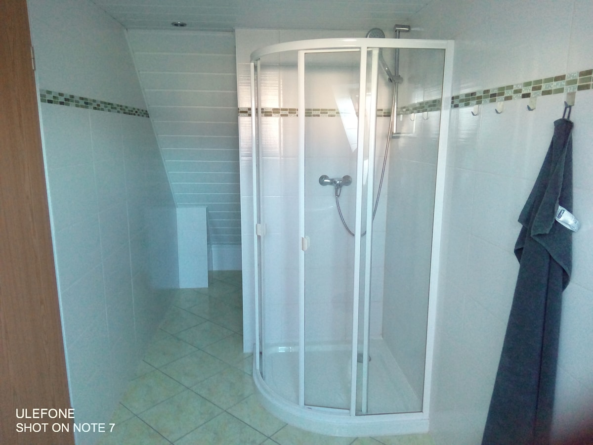 täiesti renoveeritud vana talumaja ülemine korrus suurepärasel maastikul. 2 magamistuba ja kaasaegne köök, privaatne vannituba suure duši ja vanniga, elutuba hifiga, TV ja video, Wifi Päikeseline terrass ja grillitud aed. Bikegaraaþ ja pingpongilaud! Meil on väga sõbralik koer, Karla. Ta on külalistega harjunud ja tervitab sind saabumisel tõenäoliselt!