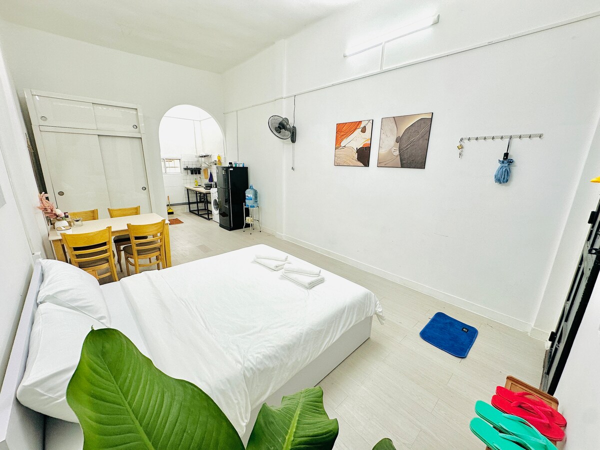 Studio apartment with unique design located in a lovely alley in Saigon Center. The studio is located on the 2nd floor of a townhouse, of which the 1st floor is the lovely BeanThere cafe. It only takes a few minutes to reach attractions and nightlife activities. One breakfast (01 food and 01 drink) / guest / night in Beanthere cafe. We offer free housekeeping for bookings longer than 4 nights. If needed, you can notify 1 day in advance.