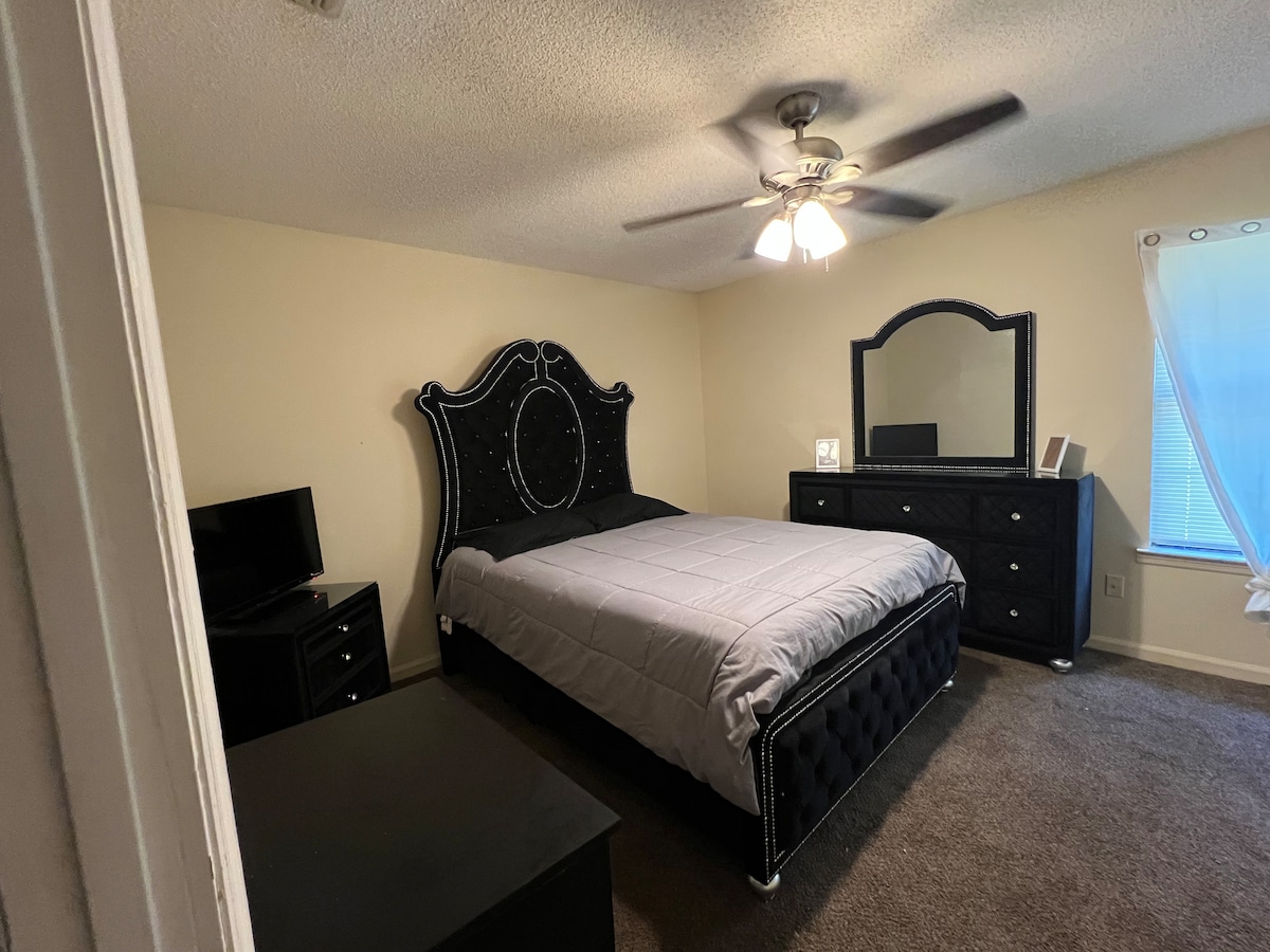 Three-bedroom home on a cul-de-sac, Beautiful Cozy, Serene Ranch house. You will find it located in a quiet & peaceful neighborhood by Tallahassee Memorial. The house is family oriented and has a large, fenced yard where you'll find outdoor furniture and firepit. The yard makes for a wonderful spot to relax and lounge with your family and loved ones. Located in a tranquil neighborhood, the house is a 5-minute drive to restaurants, bars, supermarkets, local attractions, 12-min to FSU and FAMU.