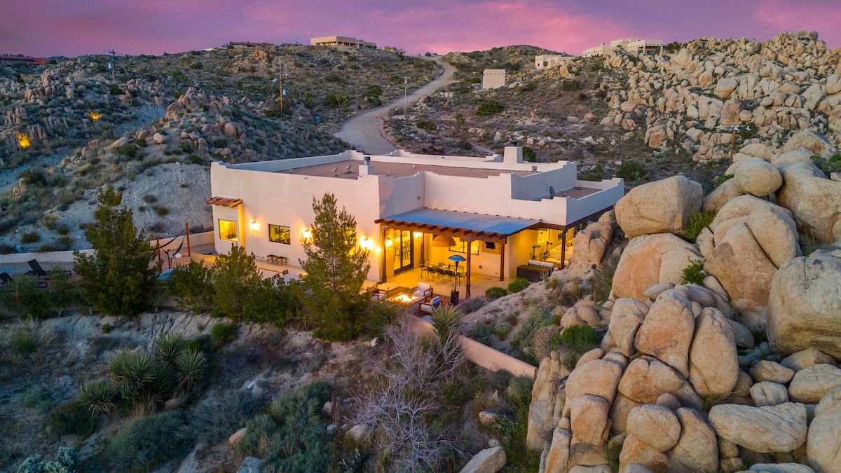 Welcome to Amaru Muru: The Stargate of the Desert, a Joshua Tree luxury desert retreat. This state of the art desert villa has spectacular views in every direction! Enjoy the luxurious pool, hot tub, yoga room, fire pit, outdoor shower and so much space indoors and out! This home has the best location in Joshua Highlands just 5 minutes from the Joshua Tree National Park entrance. Journey with us and you'll see the meticulous attention to detail and design throughout this modern desert escape.