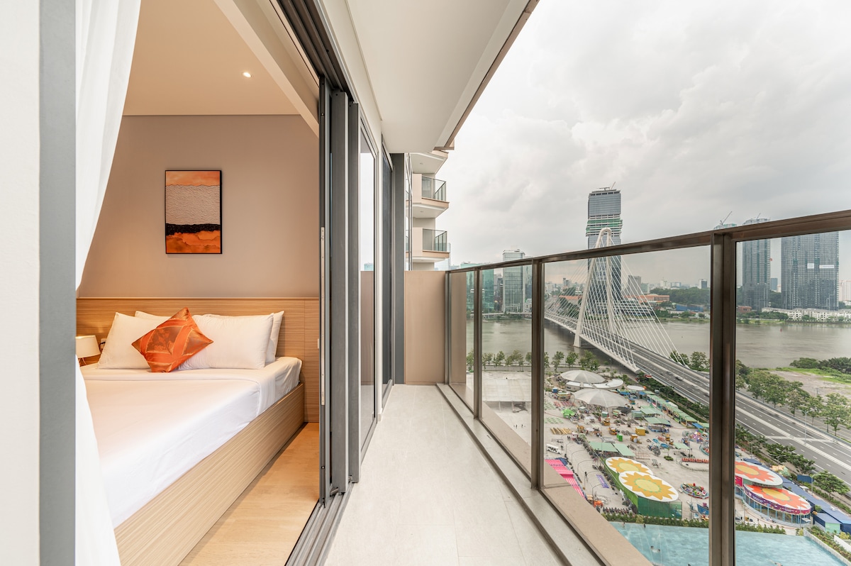 Luxury 5* The Opera Residence by ChiHome - River View CBD District 1, SkyVilla Corner Apartment - Tower A Level 2x.03A, 70m2, 2 Room. The Opera Metropole Thu Thiem - Tower A, Massimo, Level 2x unit 03A - Suurus: 70 m2 (nurgakorter) - Sisaldab 2 magamistuba, 2WC, mugav peatuda 2-4 inimesele. - 65-tolline nutiteler Netflixi ja YouTube 'iga - Diivan, tugitool, teelaud. - Söögilaud 4 tooli - Täielikud toiduvalmistamisvahendid - Kiire traadita internet on saadaval • kliimaseade kogu majas - Ööpäevaringne juurdepääs hoonele