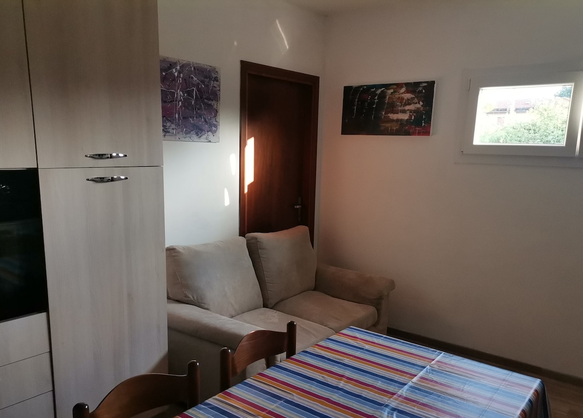 Tere kõigile! Me oleme rõõmsameelne perekond, reisiarmastaja. Pakume umbes 20 ruutmeetri suurust stuudiot, mis asub renoveeritud maalähedase sissepääsuga, eraldi sissepääsuga, mis koosneb varustatud köögist (külmik, nõudepesumasin, pliit, ahi, mikrolaineahi, nõud...), 6 tooliga laud, diivanvoodi, millest võib saada kaheinimesevoodi, vannituba duši ja pesumasinaga. Suur aed suure verandaga. Keskne asukoht külas, 8 km kaugusel Pordenone 'ist.