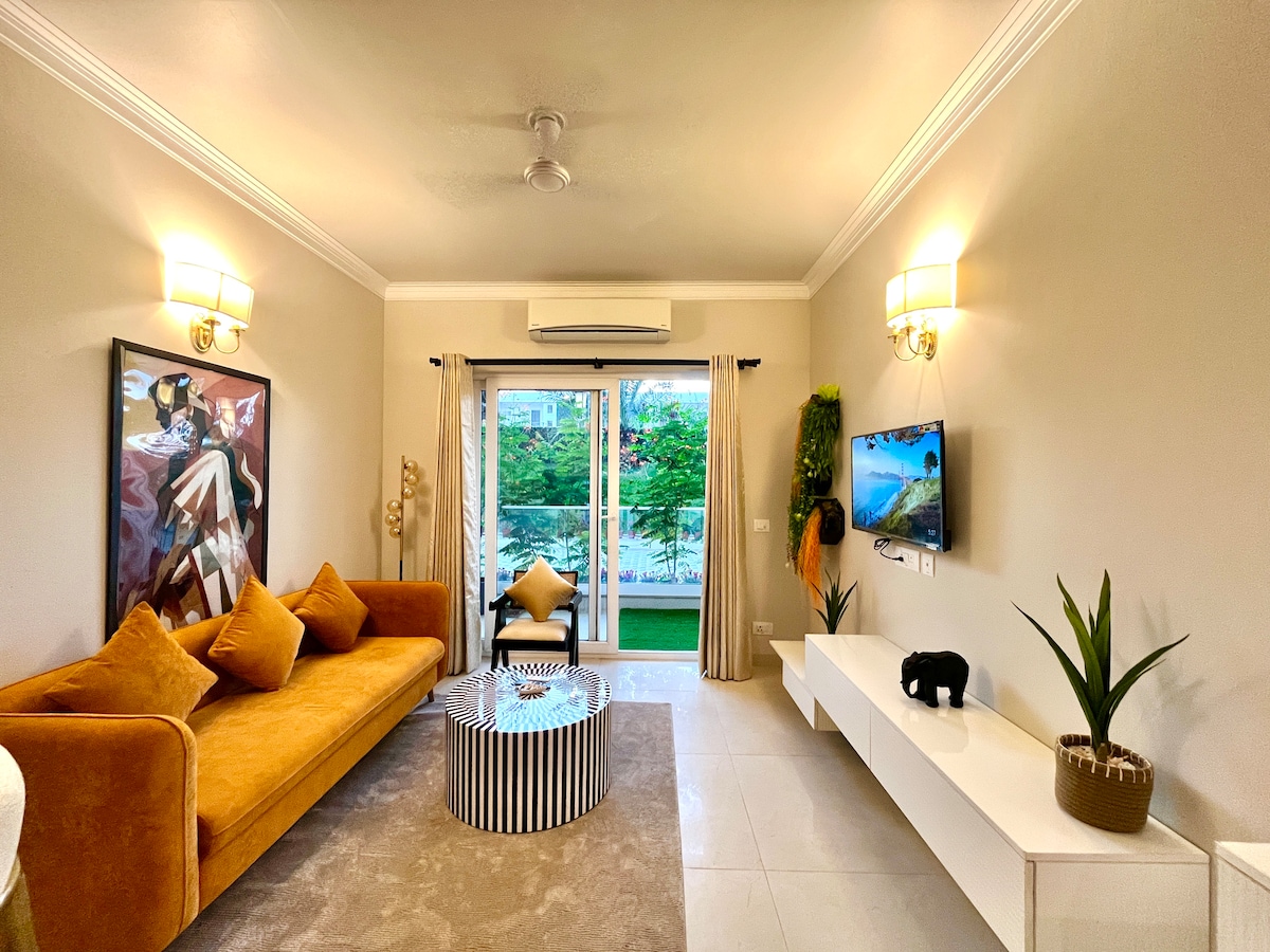 Modern 1BHK in Central Park Flower Valley. Sunlight fills the bedroom with a king bed and calm interiors. The balcony is a little wild, making it perfect for fresh air, chai, or a smoke under open sky. Kitchen is fully set for basic cooking. Smart TV (Netflix/Prime), AC + inverter backup keep you comfortable. Wi-Fi works fine for daily work and streaming. Great for business trips, short stays or slow weekends. A peaceful pocket of soft luxury in Gurugram.
