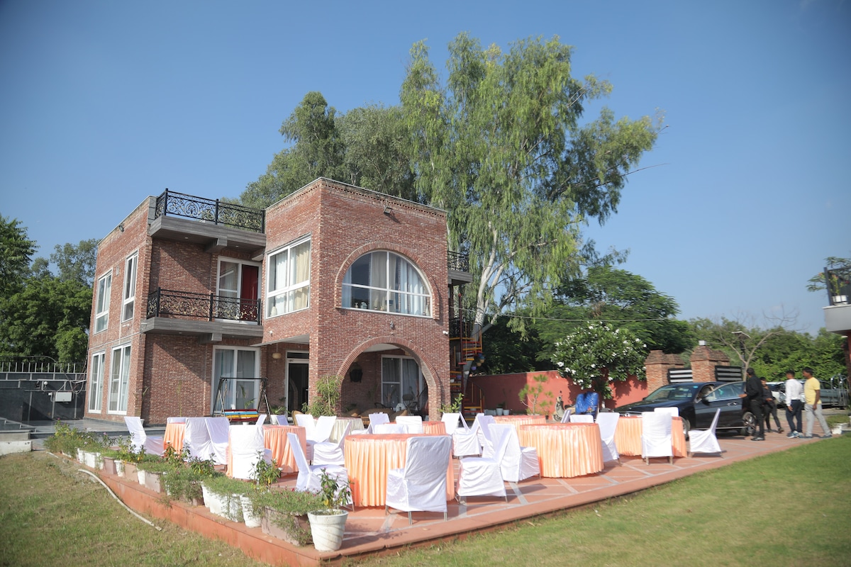➤ Nestled amidst Sohna's enchanting landscapes, just 1 hour away from Delhi, The Leela Farm is 4 acres of natural serenity! ★ Swimming, bonfire vibes, lounging by lawns, Outdoor games, Movies/ Match screenings with 81 inch TV ★ Stroll through lush lawns, swings & pathways, with roosters & pigeons adding a countryside vibe. ★ Caretakers & private chef ensure warm hospitality, delicious home-cooked meals • Ideal for events, gatherings, weddings & getaways! Learn more by looking up 8MH Organic!