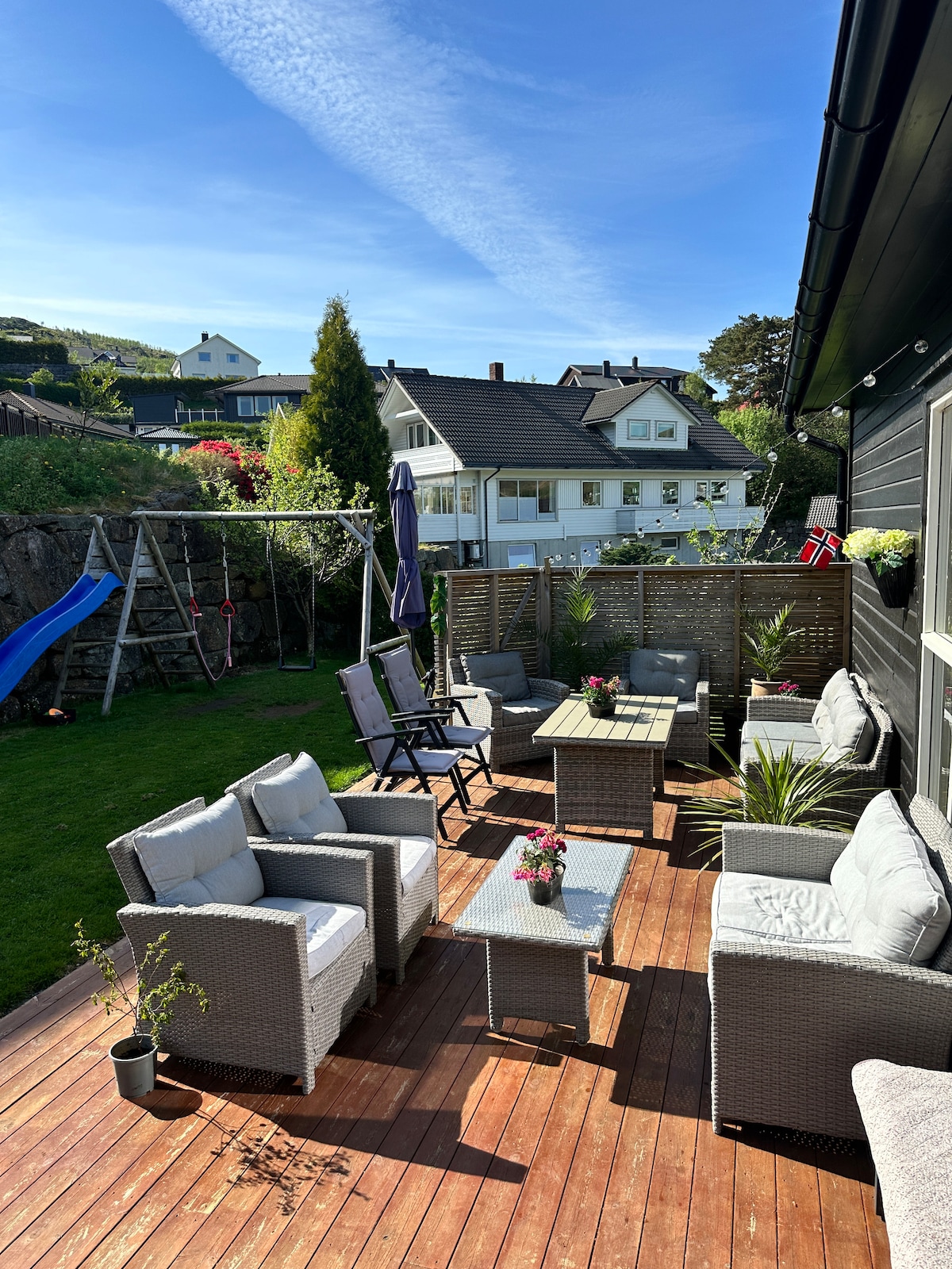 Stort, romslig hus sentralt på Ålgård med kort avstand til Kongeparken. Parken kan ses fra huset, det tar kun 20 min å gå bort. Passer fint til en russegruppe som trenger et sted å bo under LS2026. Huset har 2 bad og en stor møblert terrasse! Ute er det også mulig å parkere flere biler i stort gårdsrom. 4 soverom med sengeplass til 10 personer, her er det også mulighet for å ta med luftmadrass om dere er flere personer. (Mot tillegg) Godt utstyrt kjøkken og plass til 14 pers. rundt spisebordet.