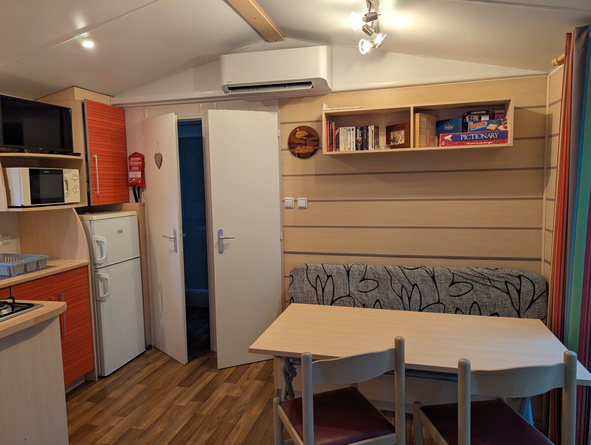 Meeldiv haagissuvila, mis asub rohelises keskkonnas Riedi kämpingus Boofzheimis. Konditsioneeriga (pööratav jaheda ilmaga), teler, grill, kuni 5 inimesele. Magamistubades on padjad, tekid (ühekordselt kasutatavad linad, rätikud puuduvad) Välibassein suvel ja sisebassein 04.04-21.09.2025, järv ujumiseks ja kalapüügiks. Animatsioonid, leib ja toit suvel
