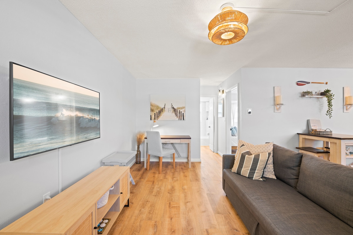 Lühikese jalutuskäigu kaugusel rannast asuvas rannakorteris on kõik, mida vajad! Mahutab kuni kolm täiskasvanut, kellel on lai kaheinimesevoodi ja diivaniga magamismatt. Asub Cape Canaverali südames, NASA käivitamiskoha lähedal koos poodide, restoranide ja lõputute rannategevustega. See korter on valmis majutama sinu järgmist peatumist koos rätikute, šampooni, kohvipoti, wifi, öökapi lampide usb-portide ja uhiuue paagita veesoojendiga. Tule vaata, mida kosmoserannik endast kujutab!