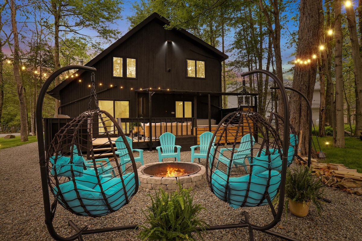 Tere tulemast Skylight Chaletisse: põgene meie rahulikku A-kujulist majakesse, mis asub Pocono mägede rahulikus metsas. Meie puhkekoht asub peaaegu aakri lopsakal metsas ja rahnudel, mis pakub täiuslikku tasakaalu mugavuse, hubasuse ja lõõgastumise vahel. Lõõgastu mullivannis tähtede all, noorenda saunas või kogune lõkkekoha ümber hubaseid õhtuid sõprade ja perega. Pole vahet, kas otsid seiklust või rahulikku lõõgastust, meie majake pakub sinu puhkuseks rahulikku varjupaika.