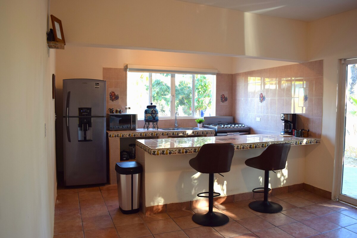 Loodus kohtub kaasaegsega selles äsja renoveeritud casitas, mis asub vaid mõne minuti kaugusel rand, nii lähedal, et kuuled ookeani! Selles täielikult sisustatud majutuskohas on kõik vajalik täiuslikuks peatumiseks Todos Santoses. Aed on lausa imetlusväärne! Lopsakas rohelus, troopilised viljapuud ja värsked maitsetaimed, võrkkiiged ja piisavalt ruumi selle linna krõbe õhu nautimiseks muudavad selle asukoha ideaalseks puhkemajaks.