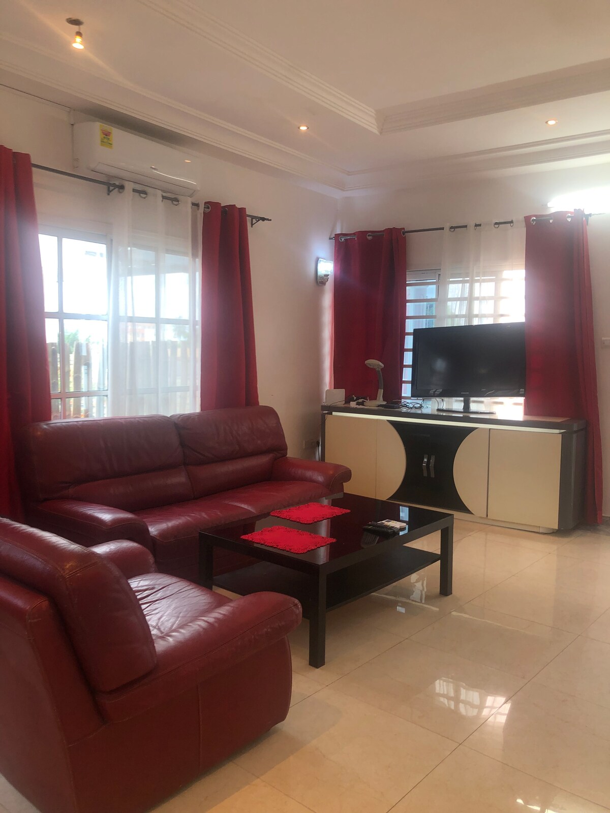 Appartement situé sur rue Agbata de 3 chambres et un double séjour très spacieux , équipé de mobiliers modernes. d'un balcon Vous êtes non loin de la plage et 1 km de centre ville et à deux pas du centre administratif ( air France , ambassade de France et d' Allemagne.. L'hébergement dispose de la climatisation , d'une télévision à écran plat, d'un lave linge, un four , Plaque four vitrocéramique, un réfrigérateur , un micro-onde , grille -pain, bouilloir etc... - électricités cash power à payer