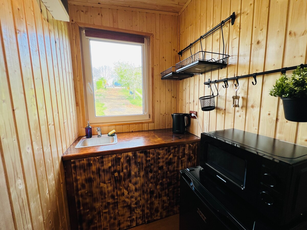 Escape to this charming cottage, perfectly nestled in nature yet just 3 km from Buzău. Offering the best of both worlds—tranquility and convenience—this picturesque retreat is ideal for couples or families seeking a peaceful stay. Perfect for couples, it features an open living area with a kitchen and a cozy loft bedroom, accommodating up to 4 guests. Enjoy relaxation with a hot tub for 35 euros/day/2persons (18:00 - 24:00) while taking in scenic courtyard views from your private terrace.