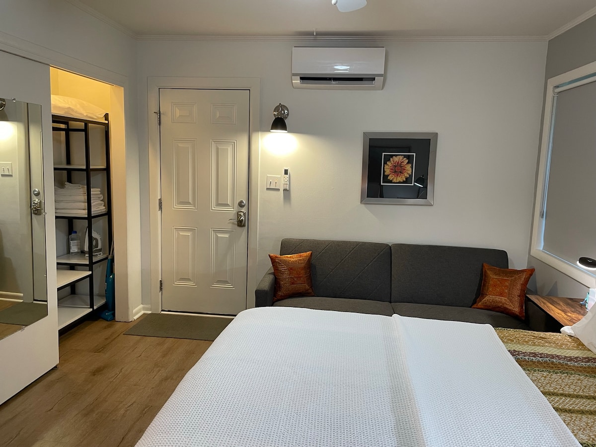 Privaatne suur üksus, mis on ehitatud peamajale lisaks. Sissepääs suurde tuppa, kus on eriti lai kaheinimesevoodi. Loetletud kogu majutuskohana, kuna see on peamajast eraldatud. Vannituba koos duši/vanni kombinatsiooniga ja suurepärase veesurvega. Parkimine on võimalik kohe ukse taga, sissepääsuks on 2 lühikest sammu. Suurepärane majutuskoht nädalavahetuse ürituste või pikema peatumise jaoks. Täissuuruses külmkapp! Asub kenas piirkonnas Vidalias, kust on lihtne linna pääseda. 20 minutit Plant Hatchini, 2 minutit toidupoodi ja linna.