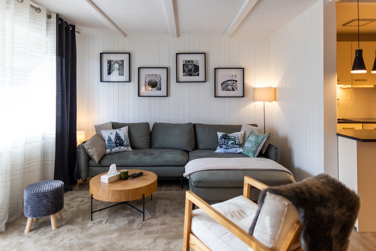 Tere tulemast meie avarasse päikesepaistelisse 3,5-toaline korter. 13 m2 terrass on suunatud lõunasse ja sealt avaneb imeline vaudi Alpid. See on täielikult sisustatud ja mahutab 5 inimest. Ideaalis asub korter poodidele ja restoranidele väga lähedal. Külakeskus on 5-minutilise jalutuskäigu kaugusel ja tasuta buss viib sind 3 minutiga gondlist. Roolirong ühendab Leysin Aigle 'iga.