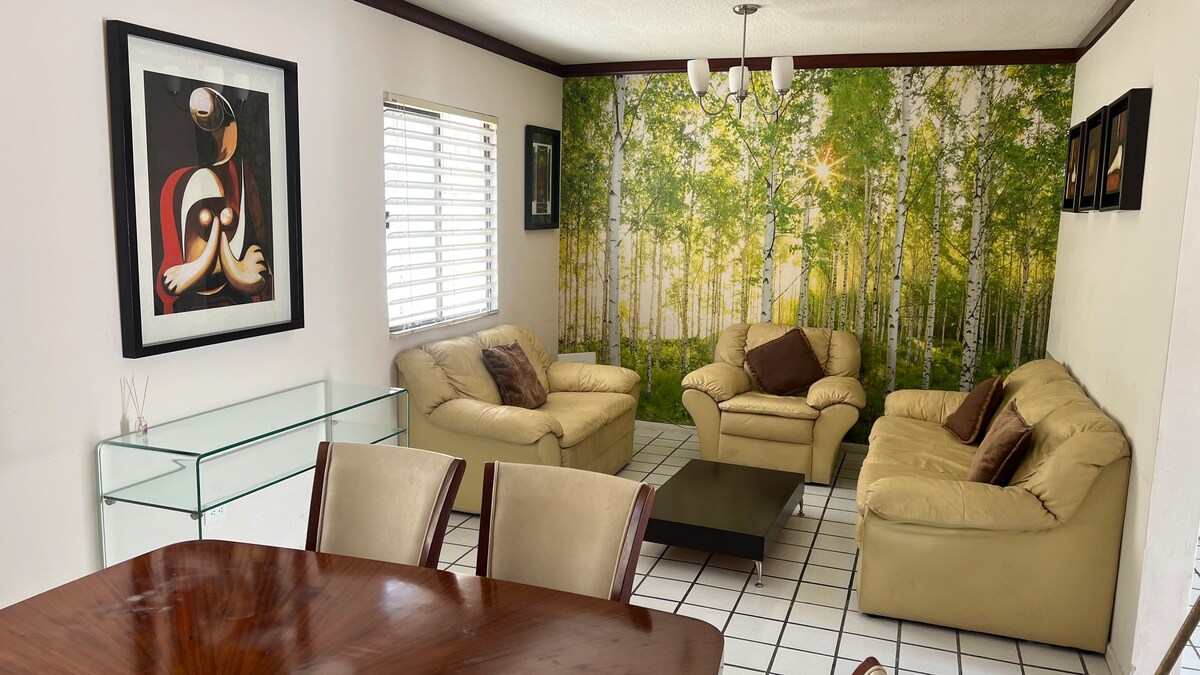 Ilus maja 3 magamistuba täielikult sisustatud, igas toas on täielik vannituba, peretuba, õhk, kaabeltelevisioon, wifi. Uus mööbel ja varustus Privaatne ööpäevaringse valvega Suurepärane asukoht 3 minuti kaugusel galeriidest ja 5 minuti kaugusel staadionist. Impresora / ilus 3BR maja, iga tuba vannitoaga, kliimaseade igas toas, WIFI, kaabeltelevisioon. Turvamehed 24 tundi, suurepärane asukoht SAADAVAL ON PEOD VÕI ÜLELIIGSED INIMESED VÕI MÜRA RANGELT KEELATUD ARVELDAMINE