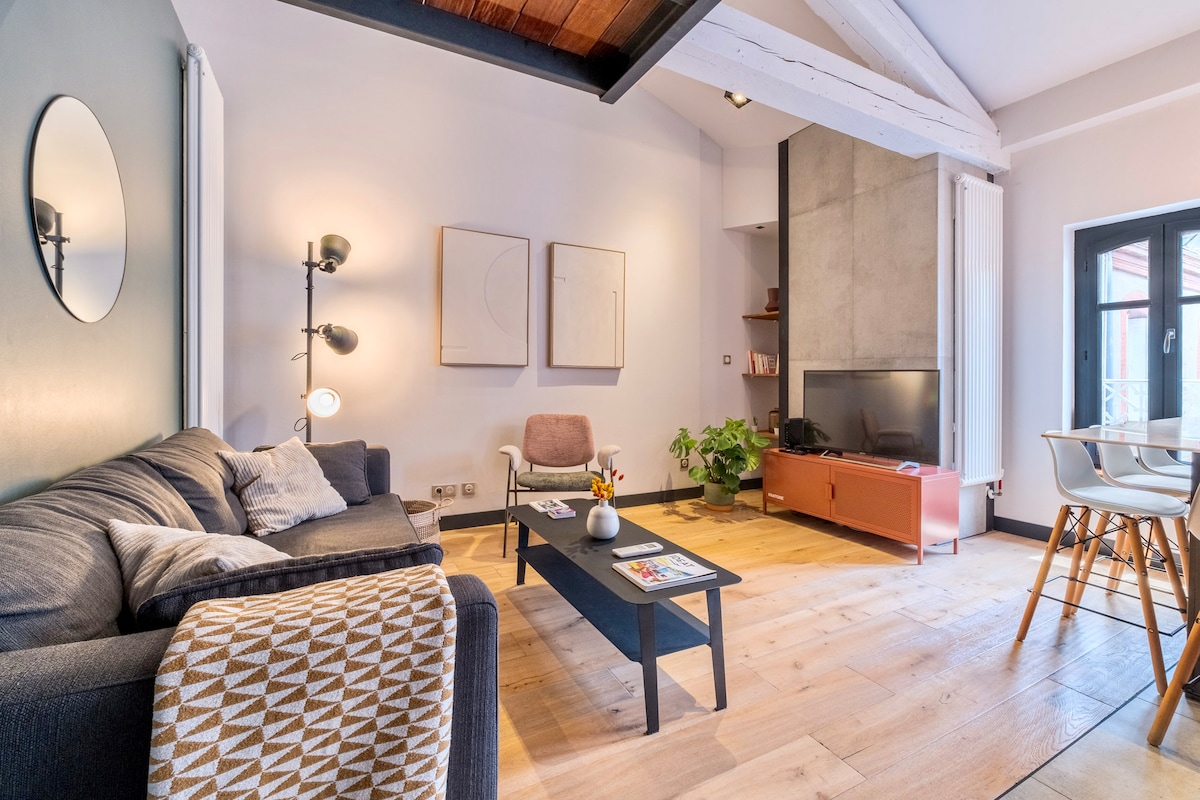 Avasta see valgusküllane stuudio Toulouse 'i südames, 15-minutilise jalutuskäigu kaugusel Capitole' ist ja kiviviske kaugusel Palais de Justiksi metroojaamast. Valguses vannitatud renoveeritud korter suurepärases Toulouse 'i roosas telliskivihoones võlub sind. Selle hubast atmosfääri täiustavad disainesemed, mis tagavad ainulaadse majutuskoha. Lisaks asub see mugavalt 20-minutilise jalutuskäigu kaugusel TFC staadionist või 5-minutilise autosõidu kaugusel.
