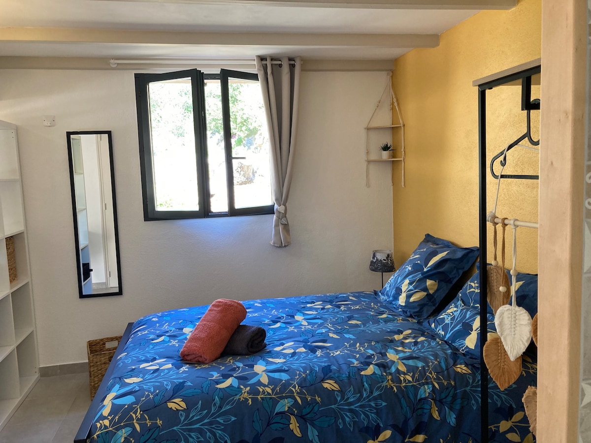Sinu käsutuses on 36 m2 korter ja 15 m2 terrass külgneval esimesel korrusel, teine korter, mida eraldab sein otsene juurdepääs koopale on 3 m kaugusel terrassist trepi kaudu. Olemas on pööratav kliimaseade tõelise mugavuse tagamiseks suvel ja talvel. Funktsionaalne korter (pesumasin, TV, wifi jne) linad on olemas maja ees pakutav parkimiskoht Maist oktoobrini on majutuskohad laupäevast laupäevani.