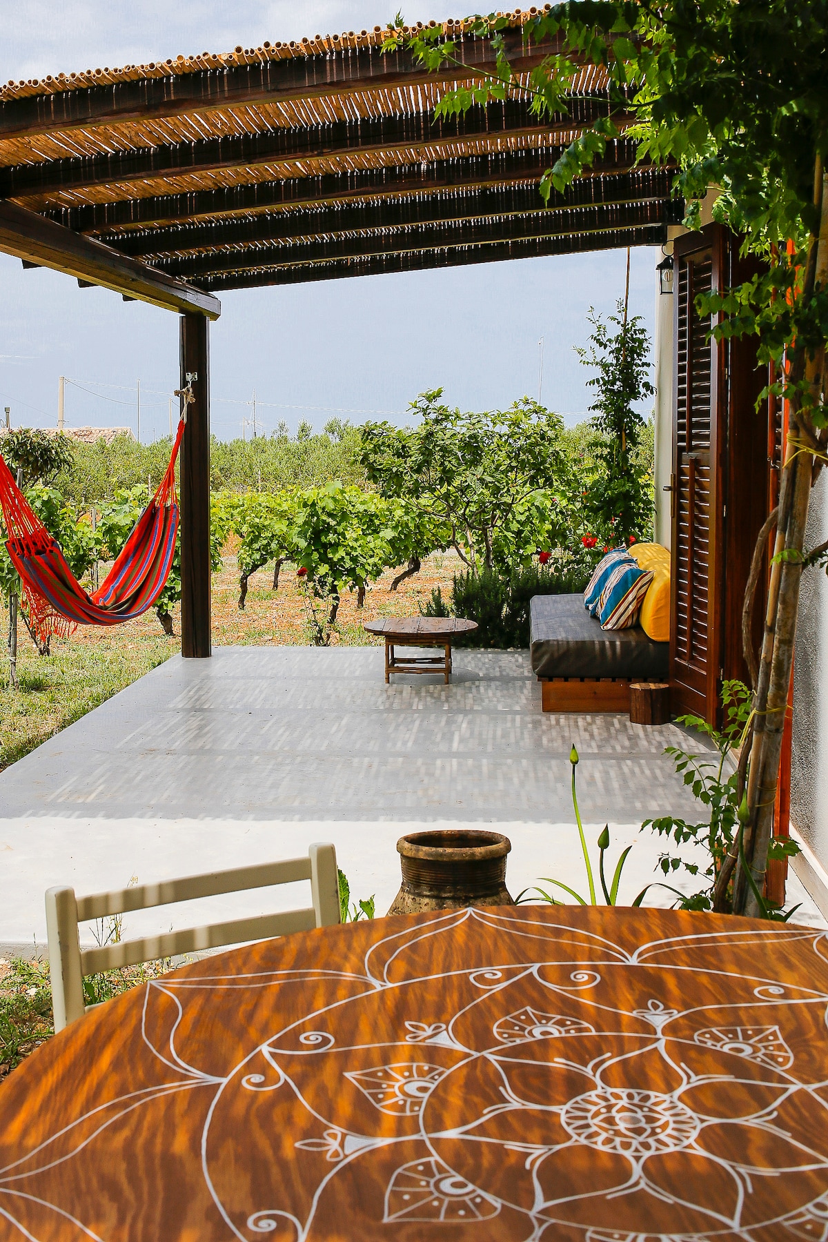 Il monolocale è arredato in stile classico siciliano ed è dotato di tutti i confort offrendo anche la possibilità di consumare i pasti all'esterno sotto un grande ulivo. Al ritorno dal mare è possibile usufruire di una doccia supplementare situata all'esterno dell'abitazione in un angolo appartato vicino al prato. Il monolocale si trova in una località vicina al mare ma a due passi dalla città e sulla strada per San Vito lo Capo raggiungibile in meno di mezz'ora. La località è molto tranquilla ma permette di raggiungere il centro della città in pochi minuti.