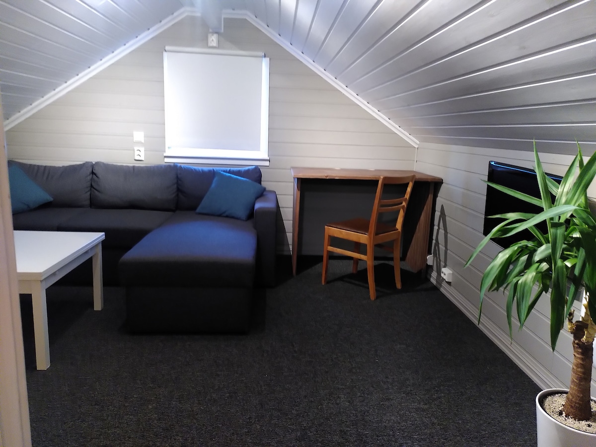 Hubane stuudiokorter privaatse vannitoaga, mis asub väikeses maamajas meie maja tagahoovis. Seal on täielikult varustatud köök ja vannituba ning kena väike terrass sissepääsu kõrval, et hommikuti tassi kohvi nautida. Võid leida suurepäraseid matkaradu lähedalt, näiteks sherpa astmed, kui soovid pulssi saada. Lühikese vahemaa kaugusel toidupoest, bussipeatusest ja mõnest Tromsø peamistest vaatamisväärsustest, nagu Ishavskatedralen ja Fjellheisen (köisraudtee).