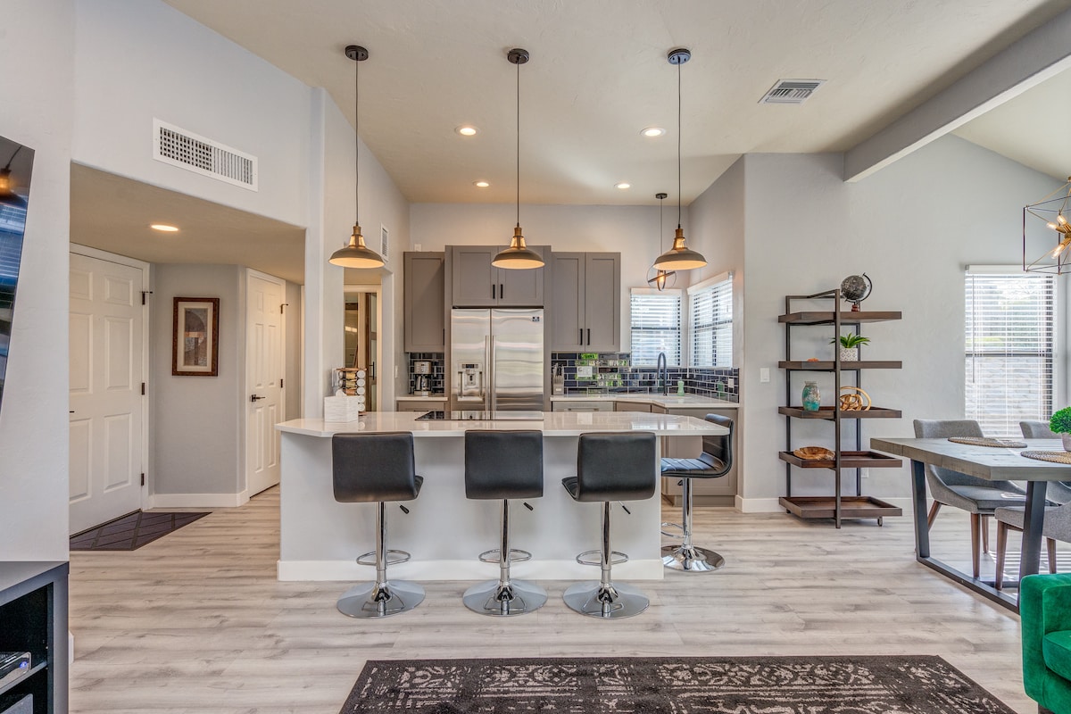 This newly renovated and carefully furnished condo is perfectly located as a launch pad for Sabino Canyon, Mt Lemmon Hwy and the Catalina Mountains, or Saguaro National Park (East). Enjoy your own private patio and access to a pool and hot tub. We provide all new appliances, Disney+, Hulu, HBO, a washer and dryer, memory foam King bed, down duvets, and 100% cotton sheets. Adjacent to Udall Park and Recreation Centre, lap pool, gym, pickleball and much more! Safe area!