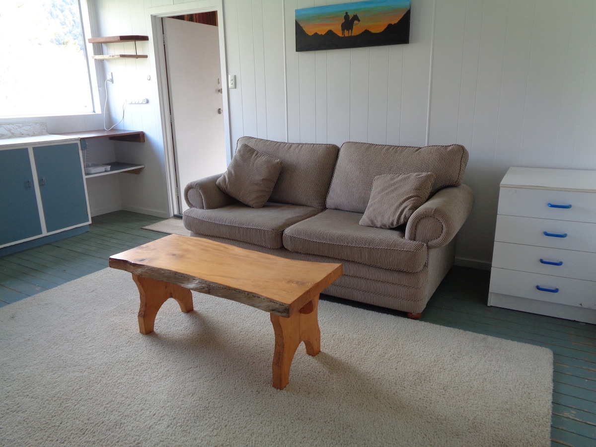 Murchison Motorhome Parki territooriumil asuv Queen-voodi majake, mis sobib ainult ühele või kahele täiskasvanule (mitte lemmikloomi, lapsi ega lisakülalisi). Külalistel on juurdepääs peahoone kööki ja vannitubadesse, kus on palgitulekahju ja kuum dušš ning kasutatud pesumaja. Kui liitud meiega suvel, meeldib sulle meie jalutusrada ja aiaala, kus on juurdepääs piirkonna parimatele jõeujumiskohtadele. Võta hommikusöök ise kaasa. HILISEIM saabumisaeg on kell 20.00.