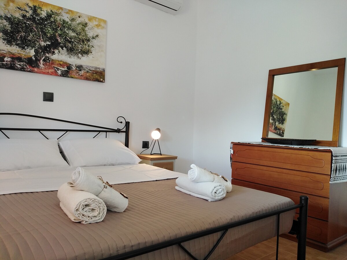 A beautiful secluded beach and a lush garden make this an ideal island getaway for those in search of a peaceful holiday, immersed in nature. In a large garden are three modern, spacious apartments, suitable for solo travelers, couples or families. The smallest apartment is an open space studio, while the largest has two floors and 3 bedrooms. A short, 3 minute walk leads to a quiet beach with few visitors. Shops and restaurants are in the village of Skala, 3 kms (2 miles) away.