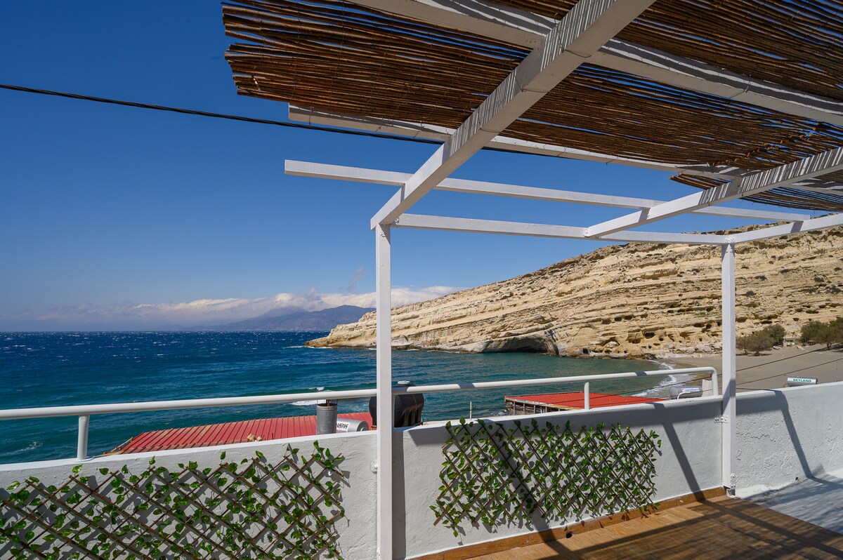Minimally designed and newly built. This high quality equipped apartment(entire private holiday home)is ideal for quiet and relaxing holidays. An amazing view from the windows overlooking the south Crete Lentas bay (only 2 min.walking from apartment to the beach). An incredible destination for your visit to Crete. Outdoor private furniture courtyard to enjoy and relax at any moment during the day or evening hours. We hope you will love the style of this property and you will enjoy your stay!
