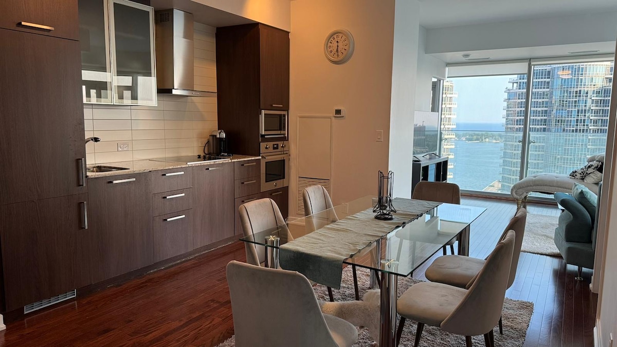 Moodne ja stiilne korter Toronto kesklinna südames. Kogu uus sisustus. Kahekümnendal korrusel on ideaalne vaade CN Towerile ja Rogersi keskusele, millel on põrandast laeni panoraamaknad 2 magamistuba, 2 täielikku vannituba (1 seisev dušš ja 1 vannidušš) Professionaalselt puhastatud ja desinfitseeritud pärast iga külalise lahkumist Jalutuskäigu kaugusel on CN Tower, akvaarium, Rogersi keskus, Scotiabank Arena, Waterfront, konverentsikeskus, metroojaam. See on parim koht Toronto külastamiseks!