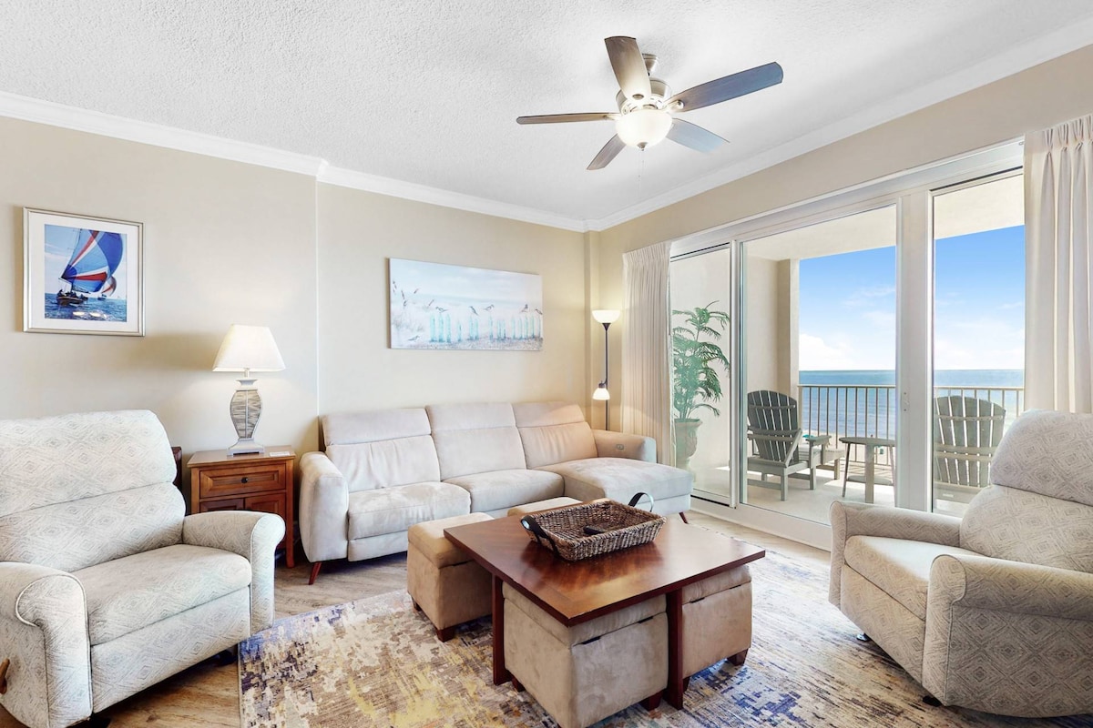 Nestled on shimmering Gulf shores, The Palms #201 invites you to unwind with jaw-dropping oceanfront views. This 2-bed, 2-bath sanctuary is your ticket to an unforgettable coastal retreat. Steps from the water, this guest favorite blends relaxation and rejuvenation for a home-away-from-home feel. From March through October, we provide complimentary beach service with two chairs and umbrella—a $40 daily value included free! Pure paradise is at your doorstep. Book this dream coastal escape today!!