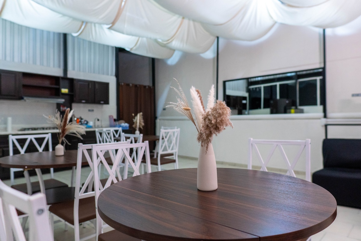 Un espacio único con hermosos jardines ,rincones acogedores, montaña para senderismo, y cerca de centros comerciales ,tiendas de conveniencia y comida típica como carnitas de cerdo, birria de res , barbacoa de chivo juguerias y fruterias , biblioteca , centro de meditación,a tan solo 15 minutos del centro de la ciudad de Uruapan.