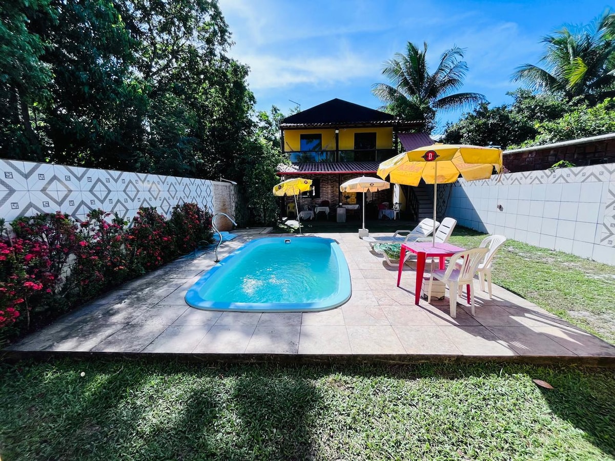 Euroopa stiilis maja Ilhéuse ja Itacaré vahel, 20 m kaugusel rannast asuvas tarastatud kogukonnas. 1000 m² suurune krunt, mida ümbritsevad kookospähklipuud. Ülemisel korrusel: 2 magamistuba (1 kaheinimesevoodi ja rõdu merevaatega; üks kaheinimesevoodi, üheinimesevoodi ja sotsiaalne vannituba). Esimesel korrusel: integreeritud tuba varikatuse juurde, 1 magamistuba, 1 vannituba, köök ja rõdu võrkkiige ja lauaga, kust avaneb vaade merele. Väliala, kus on grillimisala, tualett, bassein ja otsene juurdepääs rannale. Kodus tehtud sinu käsutuses. Tõeline paradiis!