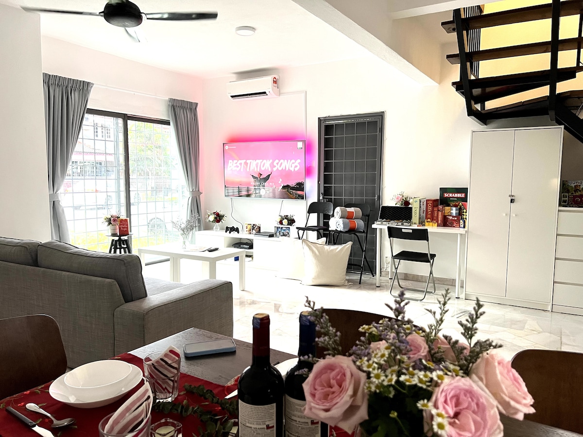 24 Hours Check-In Neat & Comfy 2-Storey House with 5ft outdoor garden yard strategically located at USJ 2 Subang Jaya with 1-3 parking. Ideal for small family homestay, making lasting memories & relationships rekindled. Pamper yourself with your loved ones with this fun and memorable staycation - Fully equipped with 65'inch 4K UltraHD Ambilight TV+PS3 Game&Netflix with cinematic experience, Modest Bathrooms & Equipped Kitchen, European BoardGames / Poker/Mahjong, Indoor WaterFilter.